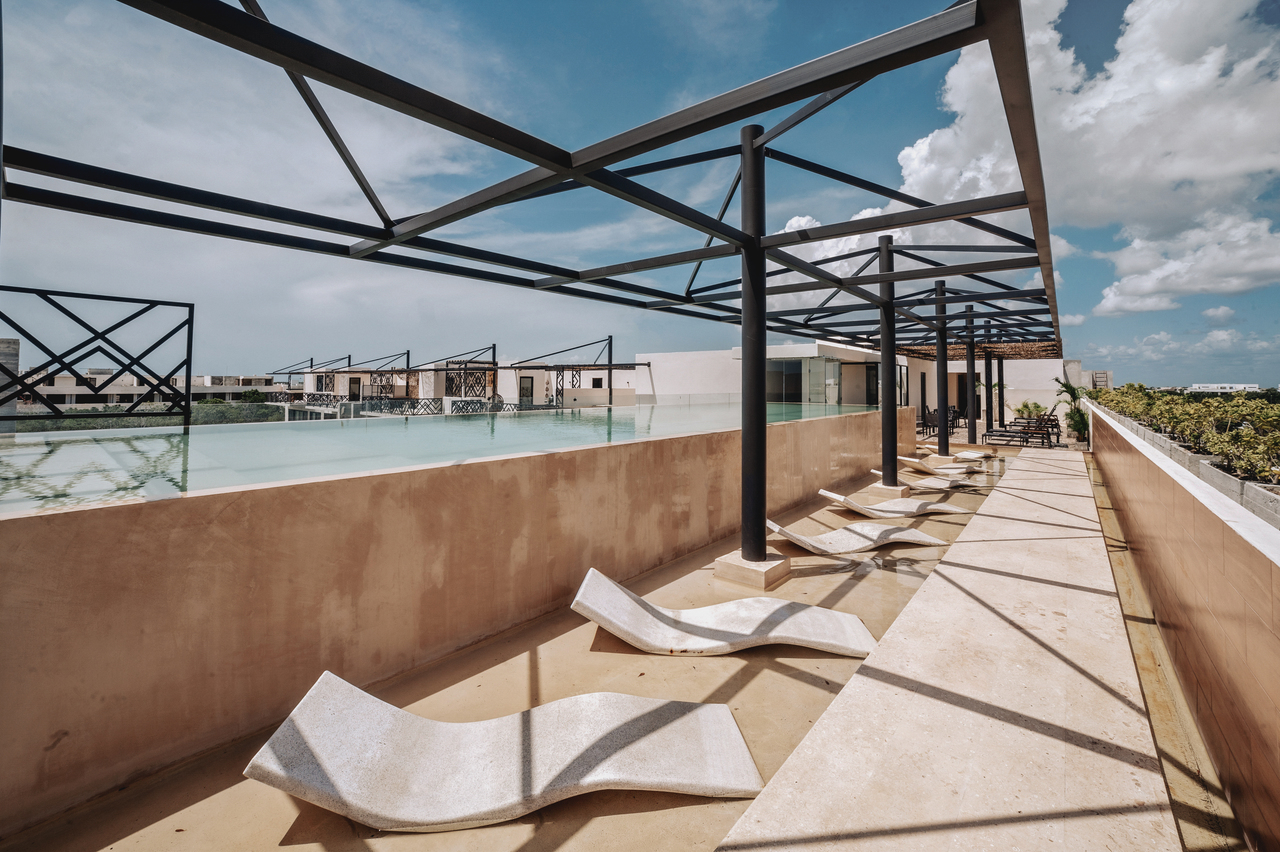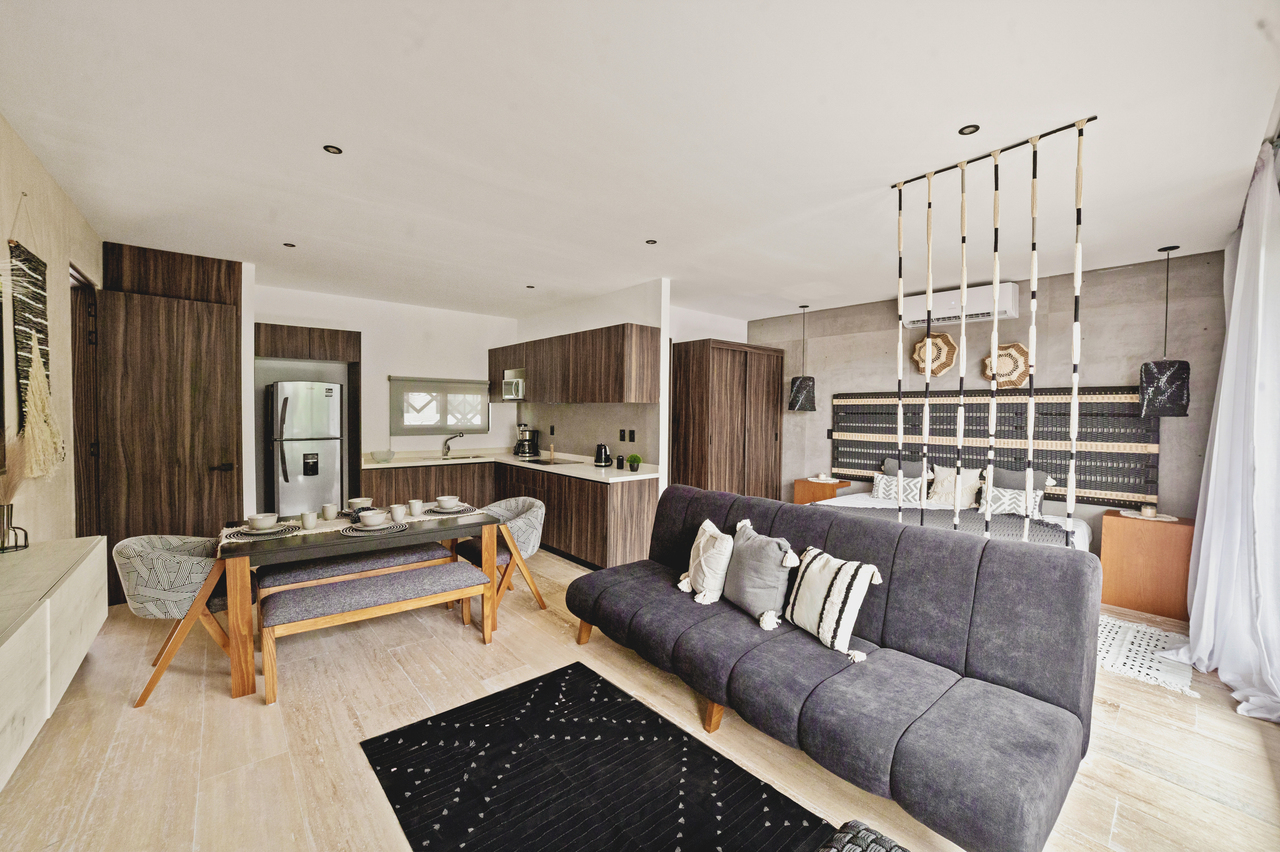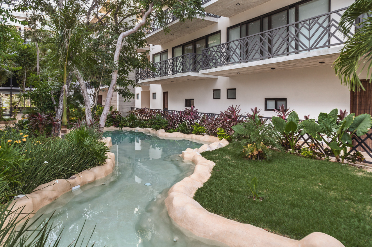 Un total de 70 sofisticados departamentos, distribuidos en tres torres de cinco niveles, comprenden esta construcción cuya ubicación privilegiada ofrece una experiencia única y elegante, rodeada por el paradisíaco ambiente de Tulum.