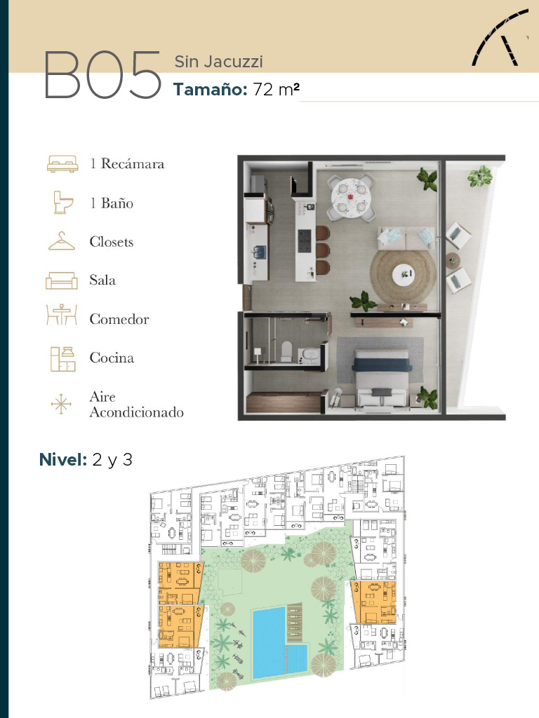 ✦ Unidades de 1, 2 y 3 recámaras, con y sin jacuzzis privados.